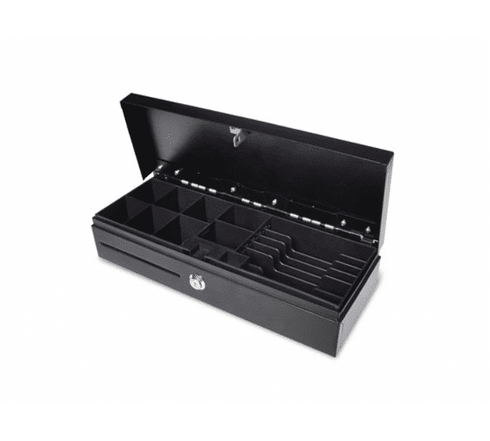 The flip-top cash drawer is a briefcase like a cash drawer that opens in an upward direction. Our flip-top cash drawer is heavy-duty and heavyweight. PosX flip top cash till is one of a kind and only available at PC Technologies. This cash drawer has 6 pockets and two trays. Our PosX flip-top cash till will add maximum security to your point of sale terminal. This PosX Cash drawer takes minimal space and can adjust to your pos terminal easily. Cash drawer price in Pakistan. Pos cash drawer. Till drawer with RJ11. PosX cash drawer. Mini cash drawer in Pakistan.